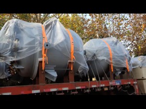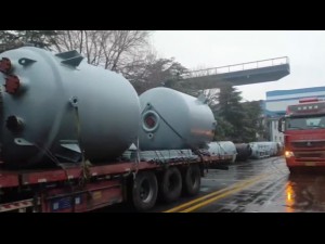 4.5万升上封头外包不锈钢搪玻璃反应釜发货现场