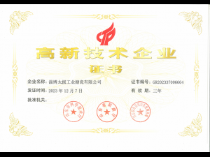 热烈庆祝淄博太极工业搪瓷有限公司荣获“高新技术企业”荣誉称号